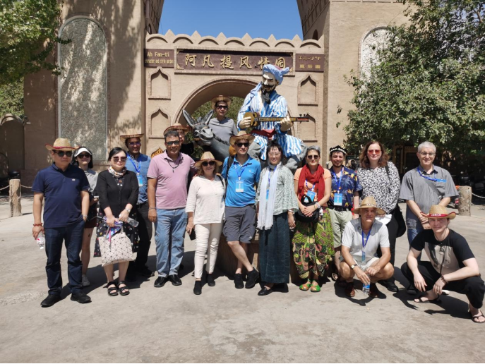 從古代絲綢之路到如今的“一帶一路”,新疆作為人類文明匯聚之地,擁有絕佳的自然景觀與悠久的人文歷史,難怪英國(guó)歷史學(xué)家湯因比說(shuō),如果一個(gè)人有來(lái)生,我愿意出生在兩千年前的龜茲(今新疆庫(kù)車),那個(gè)多民族文化交匯的地方。在天高云淡、瓜果成熟的8月,空氣中氤氳著豐收的香甜氣息,各國(guó)漢學(xué)家、翻譯家和中國(guó)作家從新疆首府烏魯木齊出發(fā),途經(jīng)昌吉回族自治州、吐魯番市,到水草豐茂的伊犁哈薩克自治州,最后抵達(dá)中國(guó)最西部的喀什地區(qū)。大家仿佛將短短的8天時(shí)間過(guò)成了一個(gè)月的豐富程度,他們品味新疆人文歷史,飽覽新疆美景,品嘗新疆美食,感受新疆人民的熱情好客以及安居樂(lè)業(yè)、載歌載舞的幸福生活,各國(guó)翻譯家和中國(guó)作家彼此間暢通無(wú)阻的交流,達(dá)成一個(gè)個(gè)合作意向,成就一段段真摯友誼,也留下一幕幕美好瞬間。