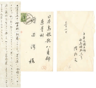 二人的書(shū)信始于1932年1月,終于1936年10月魯迅逝世前五日。書(shū)信原件現(xiàn)藏于島根縣松江市立鹿島歷史民俗資料館,可考證的出自魯迅的親筆多達(dá)58封。其中不乏魯迅隱藏身份期間,署名為“隋洛文”等筆名的信件。