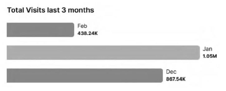 自2017年創(chuàng)立以來,元?dú)忾喿x社區(qū)一直呈現(xiàn)出穩(wěn)步發(fā)展的態(tài)勢(shì)。網(wǎng)站流量分析平臺(tái)蘇姆雷士(SEMrush)統(tǒng)計(jì)與分析的數(shù)據(jù)顯示,從截至2024年3月的有機(jī)搜索流量來看,元?dú)忾喿x社區(qū)的流量每月平均增長(zhǎng)17.32%。[7]就具體訪問數(shù)量而言,蘇姆雷士于2024年3月公布了元?dú)忾喿x社區(qū)過去3個(gè)月的總訪問量(見圖1),即2023年12月的訪問量為86.754萬(wàn)次,2024年1月、2月分別為105萬(wàn)次、43.824萬(wàn)次,3個(gè)月的訪問總量高達(dá)230多萬(wàn)次。就用戶停留時(shí)長(zhǎng)而言,數(shù)據(jù)顯示,2024年2月元?dú)忾喿x社區(qū)用戶平均持續(xù)使用時(shí)間為48分51秒。[8]以上數(shù)據(jù)表明,中國(guó)網(wǎng)文數(shù)字閱讀類產(chǎn)品目前在法國(guó)的傳播顯現(xiàn)出持續(xù)、高頻、穩(wěn)步提升的良好形勢(shì)。