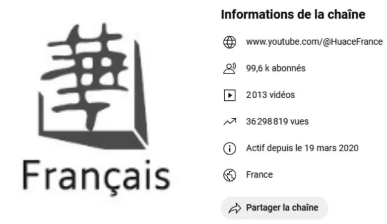 圖2 華策集團(tuán)在優(yōu)兔網(wǎng)法語(yǔ)頻道開設(shè)的官方賬戶截圖