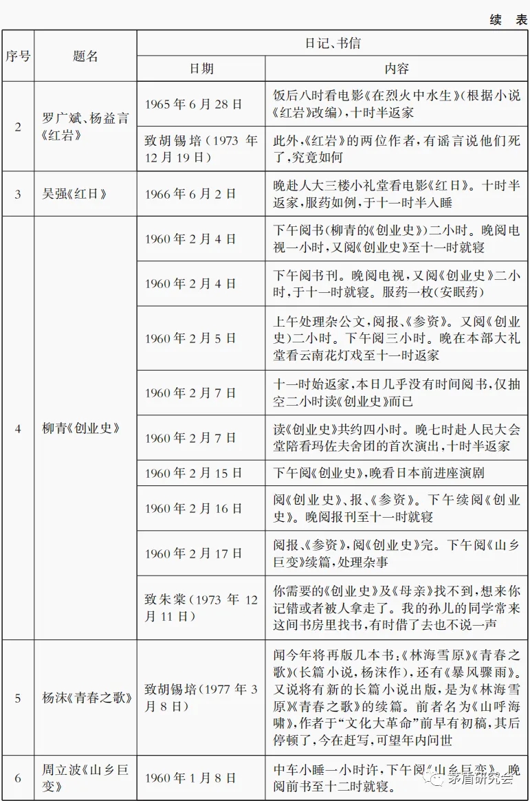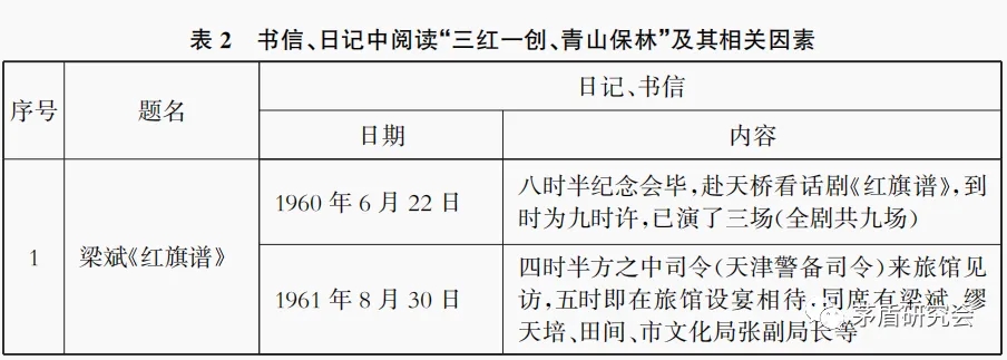 在日記中,茅盾觀看了《紅旗譜》話劇,以及電影《紅巖》《紅日》《林海雪原》,關于這些作品文本的閱讀則淹沒在了日記中“閱書”“閱書刊”之中。