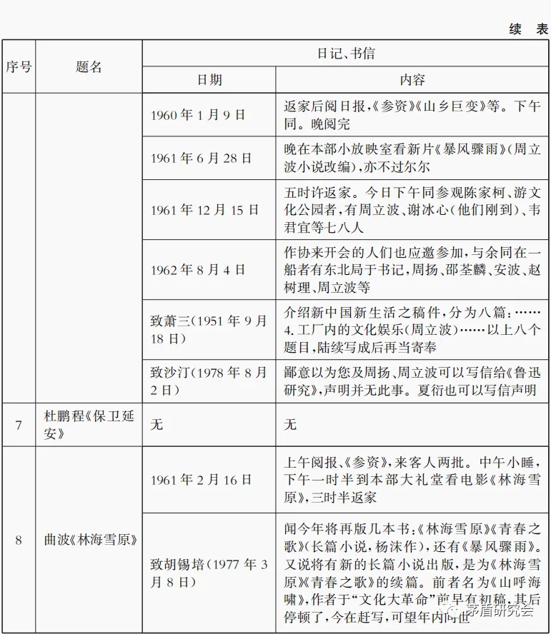 從表2中可見,柳青《創(chuàng)業(yè)史》、周立波《山鄉(xiāng)巨變》在日記中有明確記錄,其中在致朱棠(1973年12月11日)中“你需要的《創(chuàng)業(yè)史》及《母親》找不到,想來你記錯或者被人拿走了。我的孫兒的同學常來這間書房里找書,有時借了去也不說一聲“,更是證實了茅盾藏書中《創(chuàng)業(yè)史》的一種可能去向。