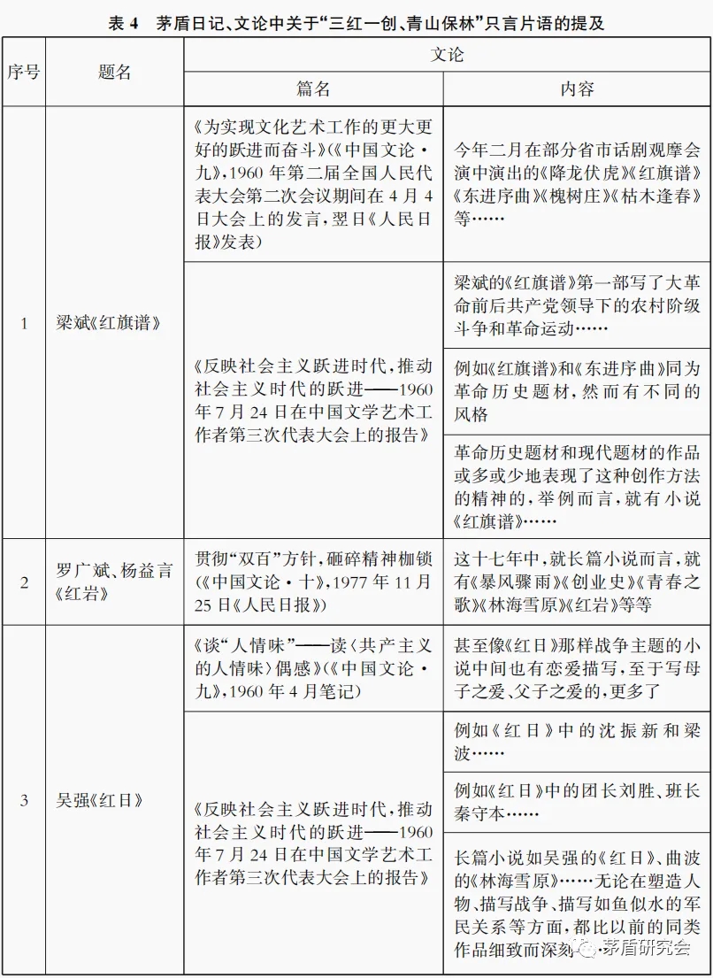 在佳作頻出的十七年文學中,形成了以“三紅一創(chuàng)、青山保林”為代表的“紅色經典”,政治傾向鮮明,社會影響巨大?!叭t一創(chuàng)”即《紅巖》《紅日》《紅旗譜》《創(chuàng)業(yè)史》,“青山保林”即《青春之歌》《山鄉(xiāng)巨變》《保衛(wèi)延安》《林海雪原》。這一歷史時期正是茅盾先生文學評論與創(chuàng)作的重要時期,本研究以茅盾與“三紅一創(chuàng)、青山保林”作品的關聯關系為切入點繼續(xù)研究,呈現茅盾閱讀、評論的往事細節(jié),以進一步充實茅盾研究相關資料。
