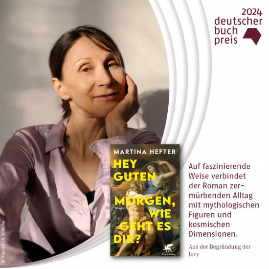 2024年10月14日,法蘭克福書展啟動儀式在舊市政廳皇家大廳舉行。儀式上揭曉了2024年德國圖書獎得主,瑪?shù)倌?赫夫特(Martina Hefter)憑借小說《嘿,早上好,你好嗎?》(Hey guten Morgen, wie geht es dir? 克萊特-柯塔出版社)得以獲此殊榮,該作者早前還曾獲锝德國文學(xué)基金會2024年大獎。