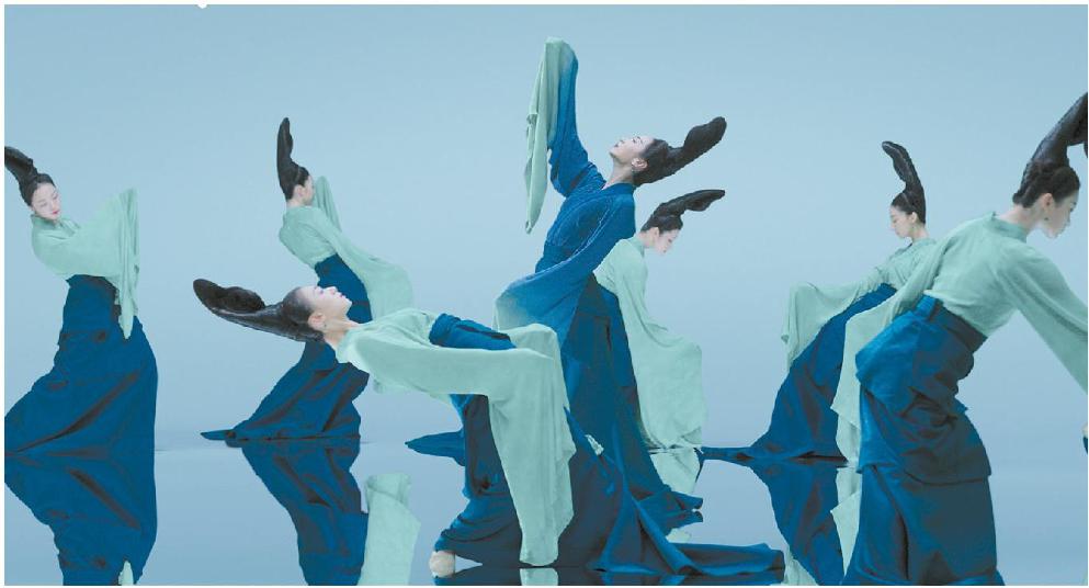 觀眾可以感知到,舞者身體在自體空間、舞臺(tái)空間和鏡頭空間關(guān)系的處理上,如何體現(xiàn)了蘇東坡所謂“靜故了群動(dòng),空故納萬境”的審美和哲學(xué)意蘊(yùn);還可感知宗白華所謂“用‘俯仰自得’的精神來欣賞宇宙”,“所看的不是一個(gè)透視的焦點(diǎn),所采的不是一個(gè)固定的立場(chǎng)”,而“具有音樂的節(jié)奏與和諧的境界”。