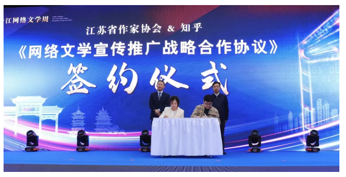 10 月22日,由江蘇省作家協(xié)會主辦的第四屆揚子江網(wǎng)絡文學周在南京開幕。開幕式上,知乎與江蘇作協(xié)正式簽訂戰(zhàn)略合作協(xié)議,圍繞網(wǎng)絡文學作家、作品與知乎社區(qū)討論、創(chuàng)作,展開一系列合作,共同探索網(wǎng)絡文學創(chuàng)新模式和產(chǎn)業(yè)機遇,推動網(wǎng)絡文學與社區(qū)創(chuàng)作融合發(fā)展。