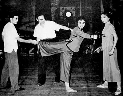 《紅色娘子軍》的編導(dǎo)之一李承祥(左二)、王希賢(左一)為第一代“瓊花”的飾演者白淑湘(右二)以及趙汝蘅(右一)排練。圖片由中央芭蕾舞團供圖