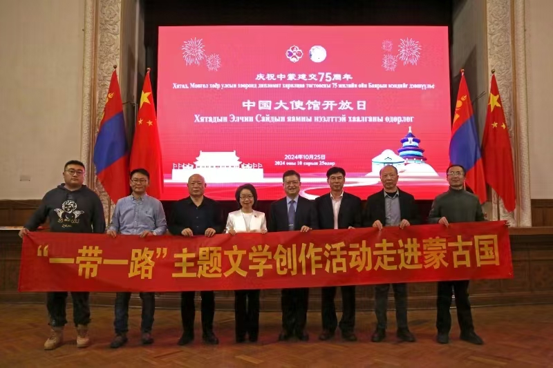 10月22日至29日,由中國作協(xié)外聯(lián)部指導(dǎo),蒙古中國文學(xué)讀者俱樂部、烏蘭巴托中國文化中心共同主辦的“一帶一路”主題文學(xué)創(chuàng)作交流活動(dòng)在蒙古舉行。龔盛輝、趙晏彪、楊曉升、楊宓、海勒根那、史玥琦等六位作家赴蒙古國深入交流,與蒙古作家、翻譯家共讀詩歌、舉辦文學(xué)講座、與蒙古青少年交流、走訪駐蒙中國企業(yè),書寫“一帶一路”建設(shè)歷程中的中蒙人民友誼故事,為中蒙建交75周年活動(dòng)增添了豐富的文學(xué)內(nèi)容。