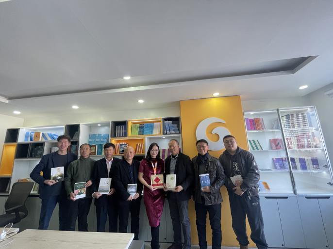 在負(fù)責(zé)承辦蒙古中國文學(xué)讀者俱樂部活動(dòng)的光明出版社,光明集團(tuán)總經(jīng)理依親女士轉(zhuǎn)達(dá)了俱樂部負(fù)責(zé)人巴特爾的問候,并向作家們介紹了集團(tuán)的發(fā)展歷程,介紹了出版社在譯介中國文學(xué)方面的成果,如《三國演義》《水滸傳》《西游記》《三體》以及正在翻譯的《雪山大地》等。依親女士表示,希望通過出版社和俱樂部平臺(tái),能進(jìn)一步促進(jìn)中蒙兩國人民的理解和友誼。交流期間,作家們向出版社贈(zèng)送了書籍,期待兩國文學(xué)互譯更加活躍。