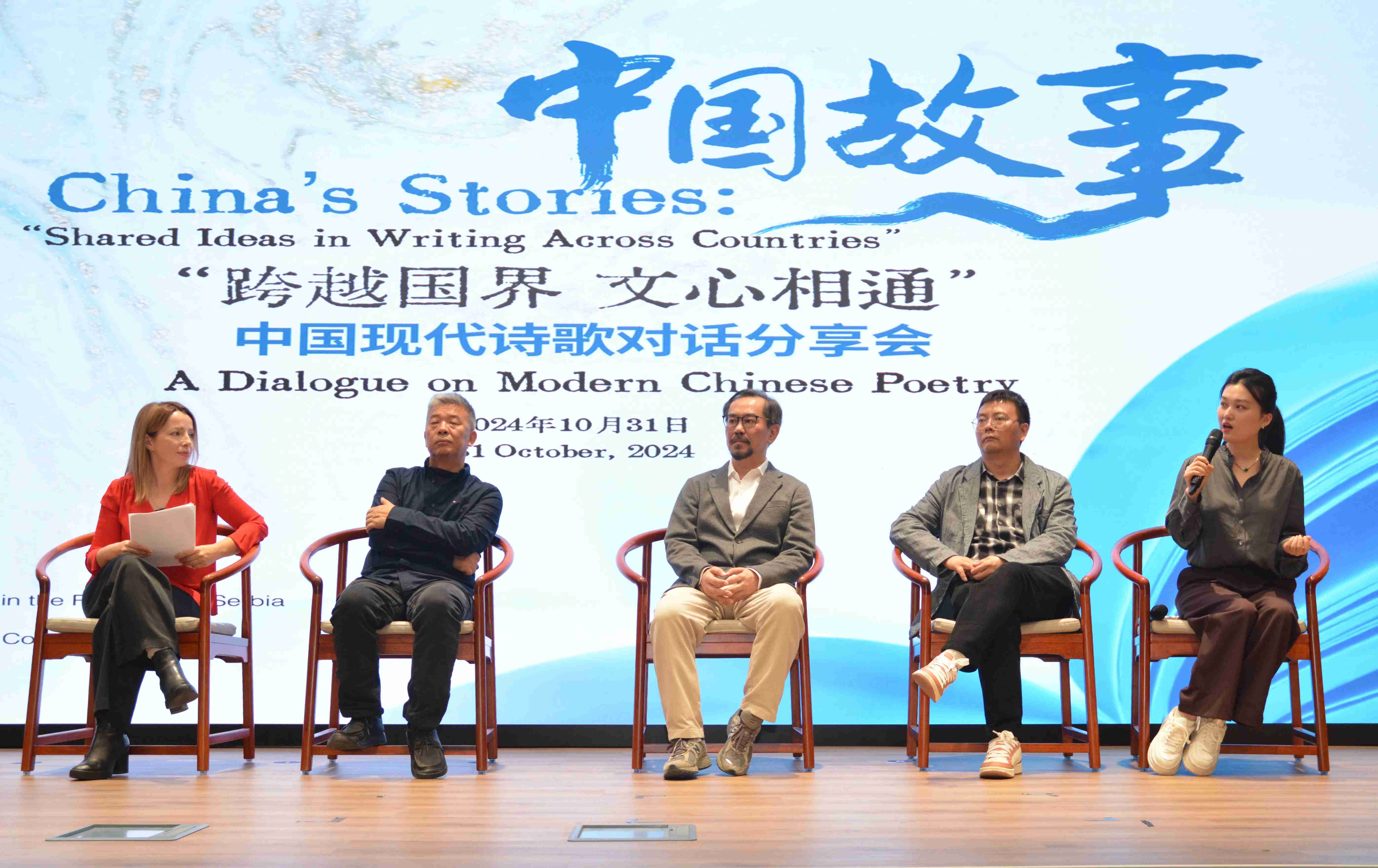 10月31日,由中國作家協(xié)會、中國駐塞爾維亞使館指導,塞爾維亞中國文學讀者俱樂部、貝爾格萊德中國文化中心、中國圖書進出口(集團)有限公司承辦的“跨越國界·文心相通”中國現(xiàn)代詩歌對話分享會在貝爾格萊德中國文化中心成功舉辦。由中國作協(xié)副主席、書記處書記邱華棟,作家雷平陽、沈葦、李宏偉和戴濰娜組成的中國作家代表團與塞爾維亞讀者代表等150余人深入交流,暢談文學,共敘友誼。