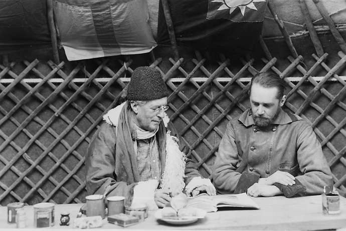 1934年左右,瑞典探險(xiǎn)家斯文·赫定(左)與考古學(xué)家弗克·貝格曼(右)。圖自斯文·赫定基金會(huì)