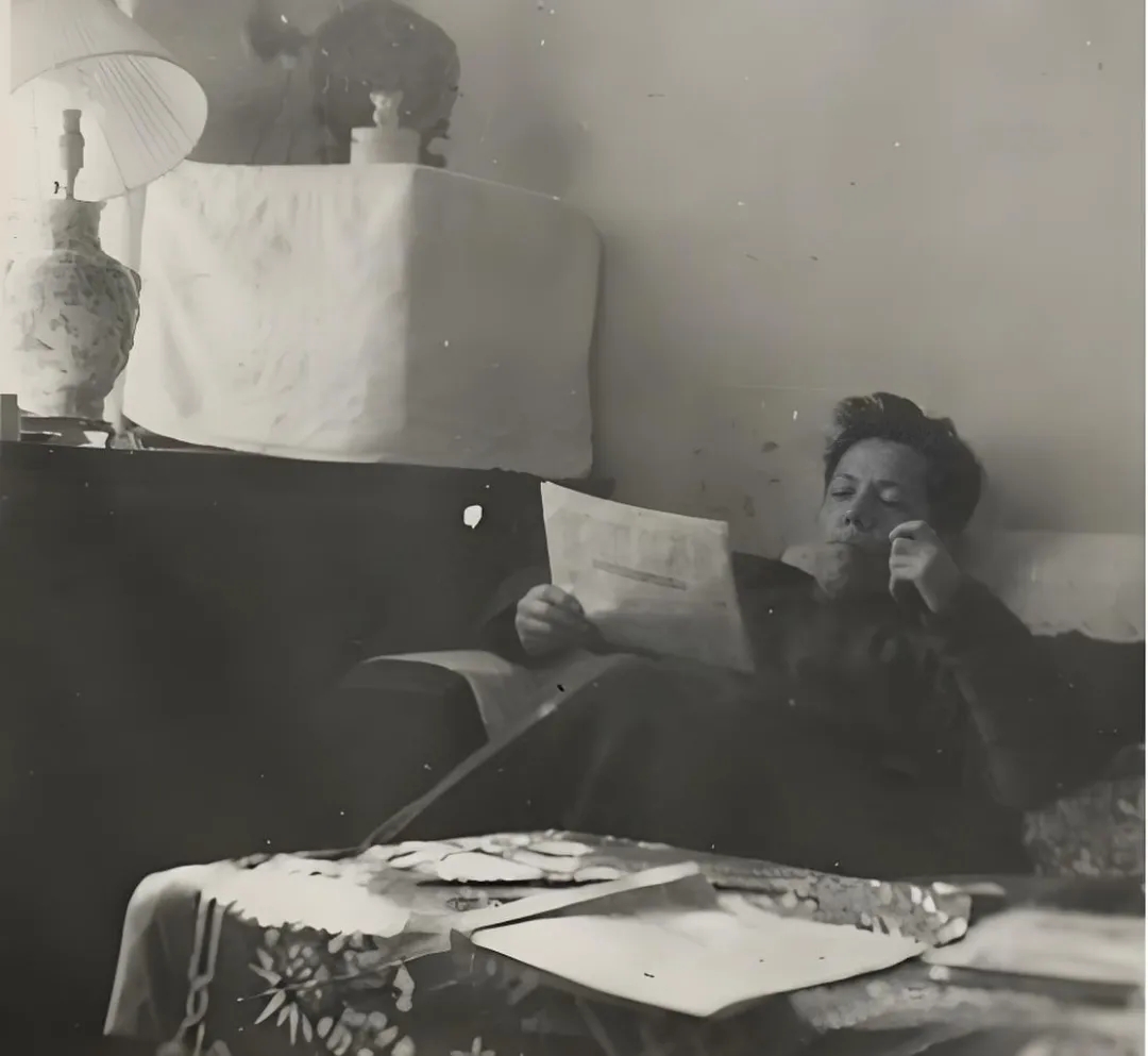 我在現(xiàn)代文學(xué)館調(diào)閱王先生的老照片時(shí),會(huì)特別留意鏡頭中那些不經(jīng)意的日常生活瞬間。有兩張讀報(bào)的照片特別引起我的注意,從周遭背景看肯定拍攝于不同時(shí)期,一張?jiān)谥嘘P(guān)園寓所,一張?jiān)阽R春園寓所,但王先生讀報(bào)的姿態(tài)幾乎沒有任何變化:把身體完全陷于沙發(fā)中,頭枕在沙發(fā)背上微微上仰,一手持煙斗,一手拿報(bào)紙,神情嚴(yán)肅,目光牢牢地釘在報(bào)紙上,似乎周圍一切都不存在。不變的身體姿態(tài)說明讀報(bào)已經(jīng)成為王瑤先生日常生活中不可動(dòng)搖的固定儀式。