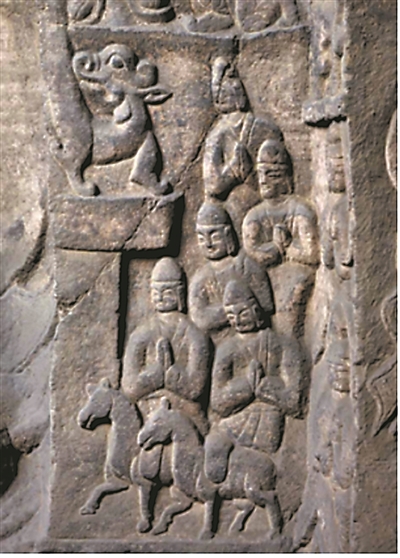 在西域諸國中,粟特人以善于經(jīng)商聞名。粟特位于中亞阿姆河和錫爾河之間的澤拉夫珊河流域,大約在今烏茲別克斯坦境內(nèi),地處歐亞大陸交通樞紐。得天獨厚的地理優(yōu)勢,令粟特人成為絲綢之路上的重要貿(mào)易者,推動中原與西域交流互動。十六國以來,粟特商人曾活躍在涼州(今甘肅武威)一帶。太延五年(公元439年)北魏太武帝平定北涼后,粟特商人及親屬隨民眾一起遷至平城(今山西大同)。從商人的形象及文獻中對粟特人善于經(jīng)商的記載來看,這支商隊或許便來自粟特。