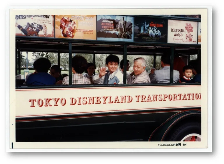 還有一組照片的背景頗夢幻,有白墻而藍(lán)色尖頂?shù)某潜ぃ屑?xì)看乃是東京迪士尼。其時(shí)王瑤已經(jīng)年逾古稀,在這里能看出他非常孩子氣的一面。從館中保存的杜琇與他的通信,也不難印證這一點(diǎn)。