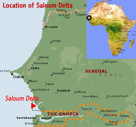 塞內(nèi)加爾位于非洲的西部,薩盧姆三角洲(Saloum Delta)是塞內(nèi)加爾的薩盧姆河入??谔帲ū贝笪餮螅┑囊淮笕侵?。在地圖上,我們還可以看到另一個(gè)重要地點(diǎn)——首都達(dá)喀爾(Dakar)位于塞內(nèi)加爾中西部沿海一個(gè)伸出去的半島上。