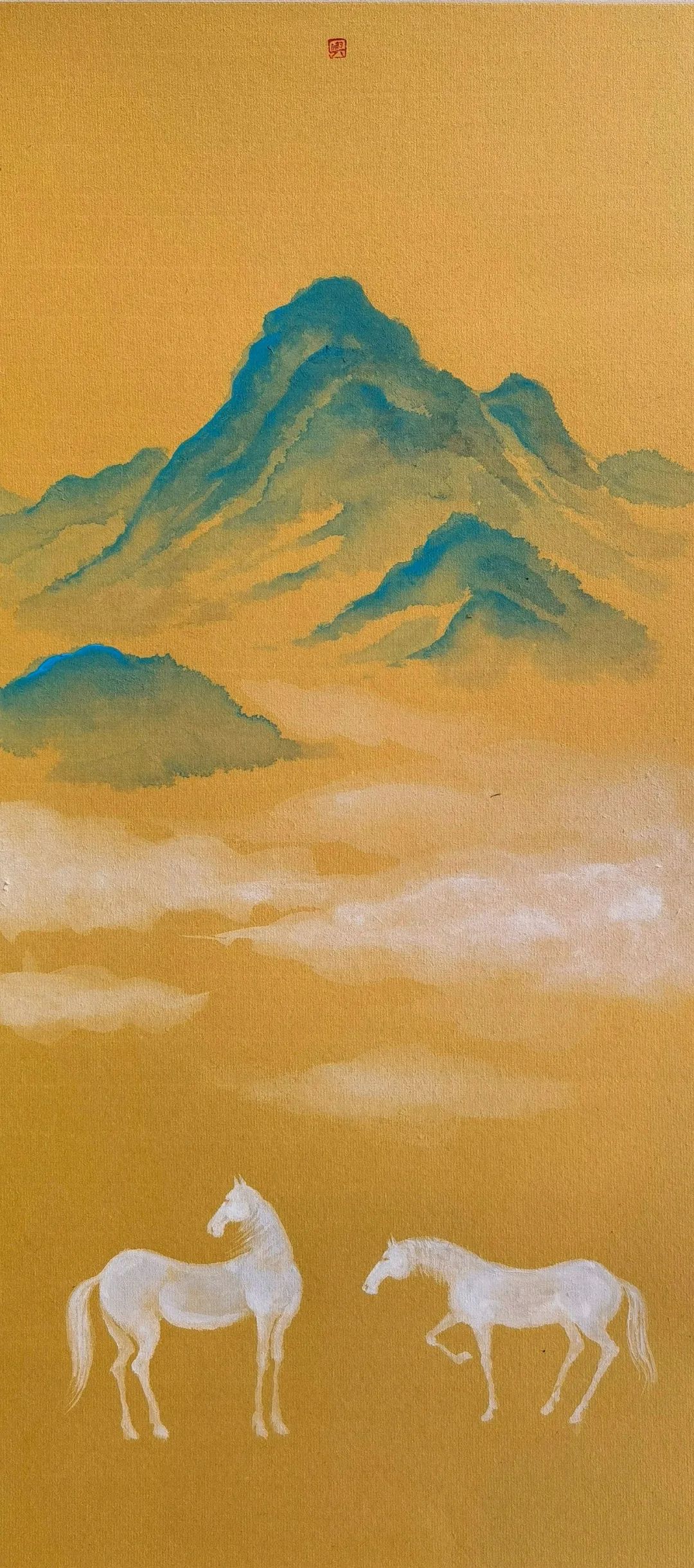 青山白馬圖 33#65 紙本設(shè)色 2021年