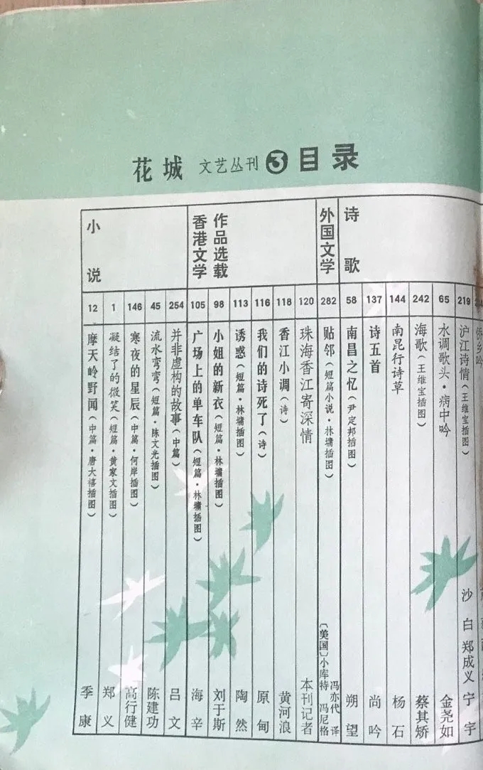 編輯部還邀請了林墉、伍啟中、陳衍寧、方楚雄等一批畫家畫插圖。后來出版了一本《林墉插圖選》。創(chuàng)刊號目錄采用套色、豎排,讓人眼前一亮,這是易征從香港學來的,內(nèi)地還沒有?!痘ǔ恰返拿總€細節(jié),都充滿了創(chuàng)新。