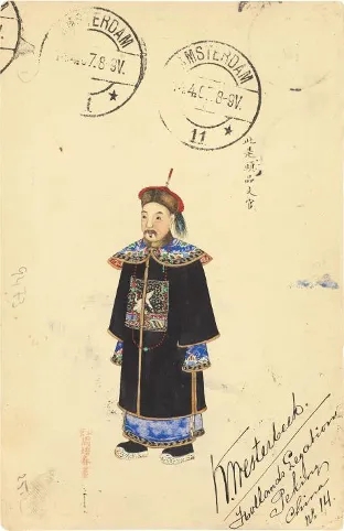 清二次片,周培春繪《頭品文官》,郵路:1907年2月28日經(jīng)北京的德國(guó)客郵局收寄,于同年的4月14日到達(dá)荷蘭的阿姆斯特丹
