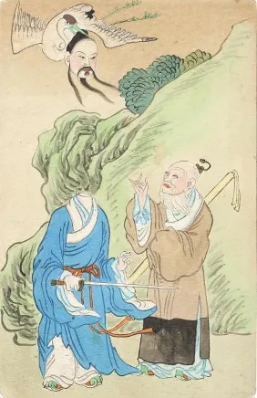 獵奇在繼續(xù),該輪到神話(huà)出場(chǎng)了,這也是手繪明信片通常引用的類(lèi)型,各地均有出神入化的例證。雖然傳說(shuō)、仙道和戲曲故事不是現(xiàn)實(shí)世界,但畢竟寄托了人們的精神幻想,訂制者也樂(lè)于沉迷于古老的夢(mèng)境之中。在制作這類(lèi)題材時(shí),即便范本在前,畫(huà)家仍能憑借想象力天馬行空,不時(shí)得神來(lái)之筆——童子馭龍、童子馭鳥(niǎo)固然討彩頭,但遠(yuǎn)不如虛構(gòu)人物更易于放浪形骸:“西游記”師徒中的孫悟空,伸出極夸張的大長(zhǎng)腿,有著即興描繪時(shí)的痛快淋漓;《封神演義》的申公豹,頭顱可怖地在空中飄蕩,要是聯(lián)想到這些圖像作于改朝換代的一九一三年,就不難理解其魔幻的現(xiàn)實(shí)依據(jù),正是城頭變幻霸王旗的亂世斗法,與街頭大變活人的魔術(shù)戲法一樣,不過(guò)是紙上顯靈的活報(bào)劇而已。