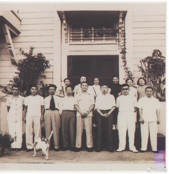 1950年回國途中,同船9位同學(xué)到俞惟樂父母家做客,前左起:俞惟麟(俞惟樂小弟)、俞惟忠(俞惟樂大弟)、潘守魯、侯祥麟、朱昂、黃星圻、俞惟榮(俞惟樂哥哥)、俞仲葵(俞惟樂父親);后左起:黃夫人郭開蘭、鄧婉嫭、佘夫人(佘守憲太太)、程太太、方梅來(俞惟樂母親)、俞惟樂