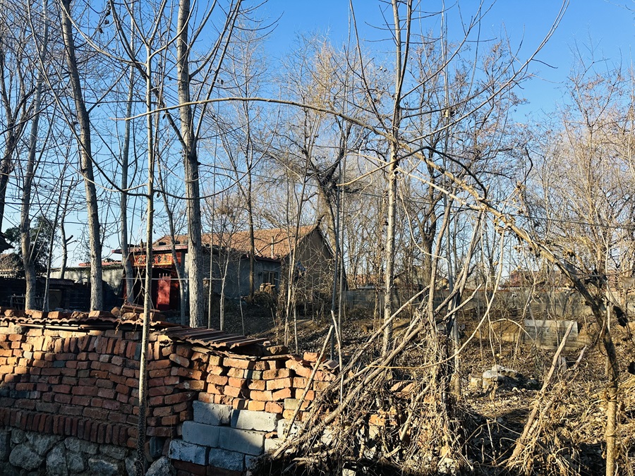 隨著車子在村間行駛,魏思孝筆下的辛留村變得有跡可循。這是一座雖不至破敗卻難言體面的小村莊,主干道上空蕩蕩,難見行人,只聞得零星犬吠。麥子并未隨著寒冬的到來而枯萎,鐵軌靜靜地躺在那里,遠處的工廠濃煙四起,于寂靜中孕育著一些生機。田壟間時不時摻雜著一些枯樹,枯樹枝雜亂地糾纏在一起,因無人打理,有些樹已搖搖欲墜。據(jù)魏思孝說,有幾年村民聽聞村子要拆遷,可以按樹給錢,都紛紛拼命種樹,后來政策改成按畝給錢,大家沒了興致,也就隨便它們長了。