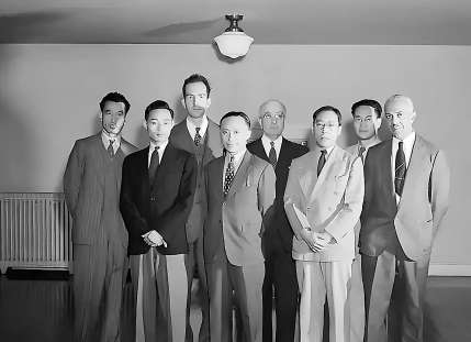 上世紀四十年代,美國國會圖書館東方部主要館員合影,左一為王重民、左四吳光清、左五為恒慕義。
