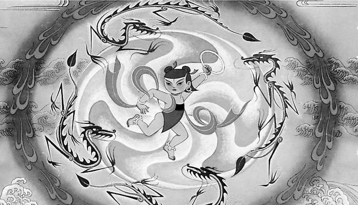 《哪吒鬧?!访佬g(shù)片的總設(shè)計(jì)是原中央工藝美術(shù)學(xué)院院長(zhǎng)張仃先生。張先生不僅設(shè)計(jì)出一部經(jīng)典的美術(shù)電影,而且為首都機(jī)場(chǎng)設(shè)計(jì)了一幅巨大的“哪吒鬧?!北诋?。時(shí)至今日,這幅寬15米、高3.4米的作品,依然是首都機(jī)場(chǎng)裝飾畫中的扛鼎之作。