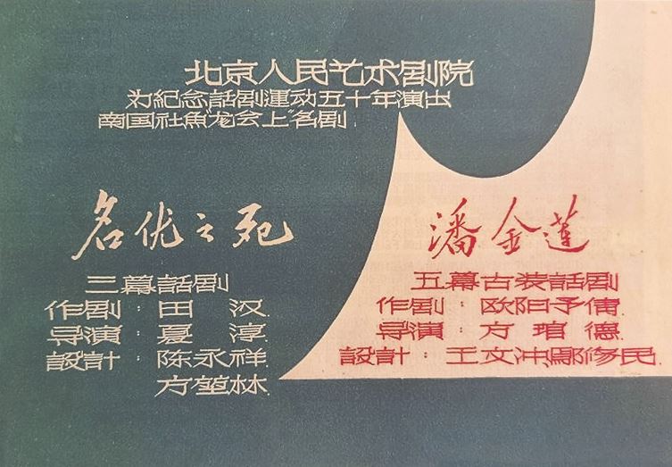 一九五七年,歐陽(yáng)予倩編劇的《潘金蓮》與田漢編劇的《名優(yōu)之死》同在北京人民藝術(shù)劇院演出