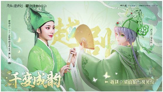 更有妙趣的設計是,《戲游九州》邀請了因現(xiàn)象級越劇《新龍門客?!贰俺鋈Α钡那嗄晟醒輪T陳麗君扮演梁山伯,洛天依則活學活用地飾演祝英臺,與陳麗君共同呈現(xiàn)梁?!安輼蚪Y(jié)拜”的經(jīng)典場景。這為觀眾帶來了奇趣與驚喜,傳統(tǒng)戲曲的戲迷與“二次元”的粉絲在不斷涌現(xiàn)的彈幕中達到共鳴。干貨滿滿的游學記非但毫不枯燥,反而令人意猶未盡。