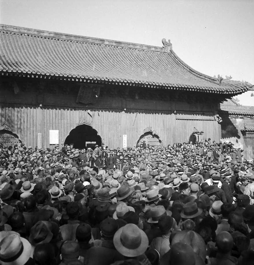 正月,雍和宮天王殿前,喇嘛正在跳布扎,圍觀者人山人海。