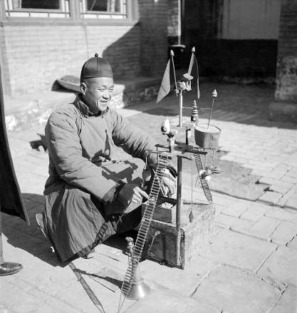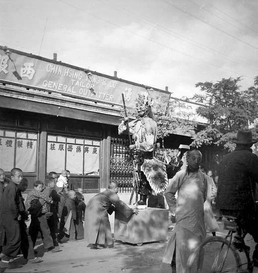 這些影像并非獵奇式的西方凝視,而是以平實的視角捕捉著鮮活的瞬間:她拍攝了胡同里的剃頭匠、茶館中聽評書的市民、廟會上的雜耍藝人,展現(xiàn)了北平的社會肌理;她對古建筑情有獨鐘,鏡頭下的故宮角樓、頤和園長廊、西山寺廟,既呈現(xiàn)建筑細(xì)節(jié),也記錄其與周邊環(huán)境的共生關(guān)系;春節(jié)期間的舞龍表演、葬禮上的紙扎工藝,甚至偏遠(yuǎn)鄉(xiāng)村的社戲場景,民俗百業(yè)均納入她的影像檔案。