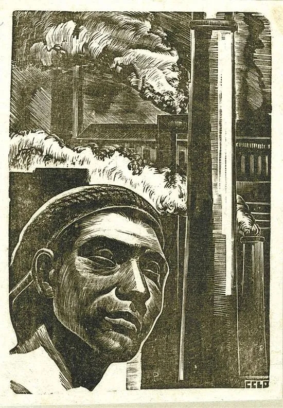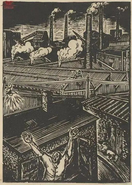 機(jī)器化生產(chǎn)過程在根本上重新塑造了勞動者的身體特質(zhì),他們在將自身投入機(jī)器運(yùn)轉(zhuǎn)的過程中(“鐵的隧道中流著我們的血,/皮帶的機(jī)轉(zhuǎn)中潤著我們的汗水”[53]),也被機(jī)器所塑造。后者不僅磨練了他們的意志,更打造了他們的身體:“機(jī)輪加速的旋轉(zhuǎn),工人都在磨練自己的臂膀,使它很快的堅(jiān)實(shí)起來,要和鐵一樣的成為鐵臂。鐵臂!”[54]正是這樣的組織和鍛煉,為無產(chǎn)階級賦予了強(qiáng)大的力量感,他們不僅在自我感知中構(gòu)造出一種機(jī)器化的自我形象,同時(shí)也將依據(jù)這種自我形象,在斗爭中重新改造都市的整體面貌。