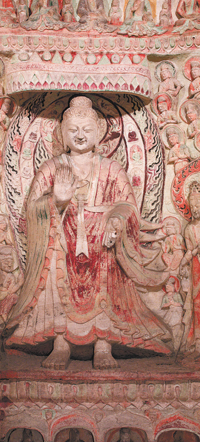 隨著人口的遷徙,平城成為胡商梵僧云集之地、北方佛教的新中心。一批批高僧大德和能工巧匠不僅帶來(lái)了精湛的雕刻技藝,更將古印度、涼州、關(guān)中等地佛教藝術(shù)風(fēng)格和造像理念帶入平城,與本土工匠共同創(chuàng)作出不朽的藝術(shù)作品,呈現(xiàn)鮮明的時(shí)代風(fēng)格。