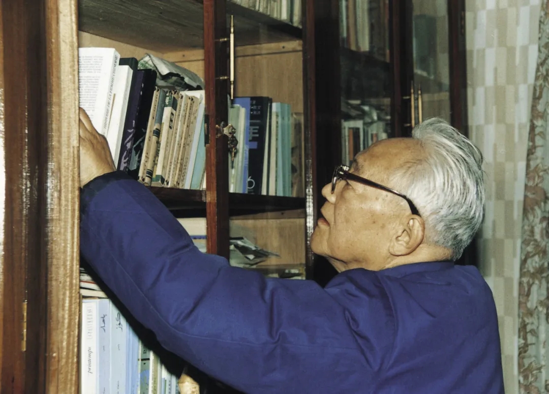 巴金在家中整理捐贈(zèng)圖書(shū)
