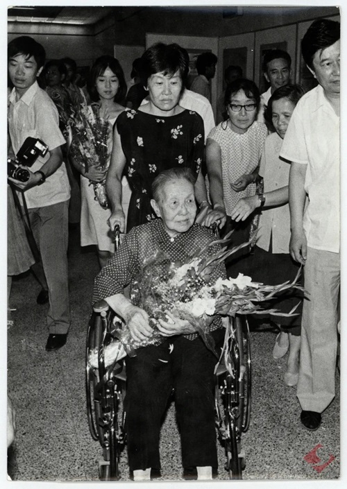 冰心在“冰心文學(xué)創(chuàng)作生涯70年展覽”現(xiàn)場(chǎng)