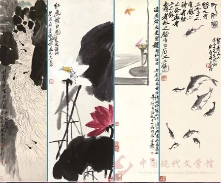 中國(guó)現(xiàn)代文學(xué)館藏齊白石國(guó)畫(huà)《蛙聲十里出山泉》《紅蓮禮白蓮》《凄迷燈火更宜秋》《九如圖》