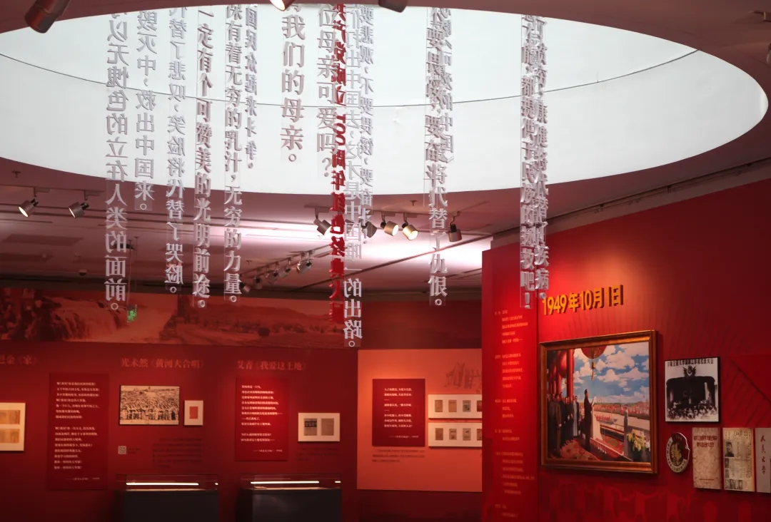 “迎著新生的太陽(yáng)——慶祝中國(guó)共產(chǎn)黨成立100周年紅色經(jīng)典大展”展廳一角