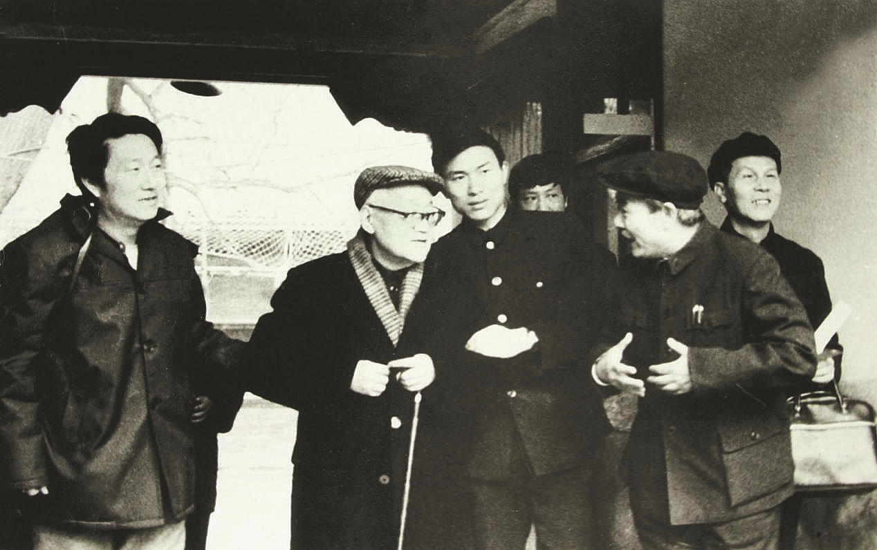 1985年3月26日,這對巴金(左二)來說是個(gè)難忘的日子,夢寐以求的中國現(xiàn)代文學(xué)館終于正式開館了。由葉圣陶手書的長匾“中國現(xiàn)代文學(xué)館”掛在京城西郊萬壽寺古樸庭院的門口。巴金露出了欣慰的笑容。
