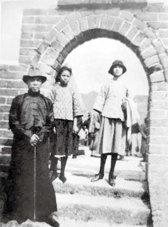 與梁?jiǎn)⒊?、梁思莊在長(zhǎng)城的合影