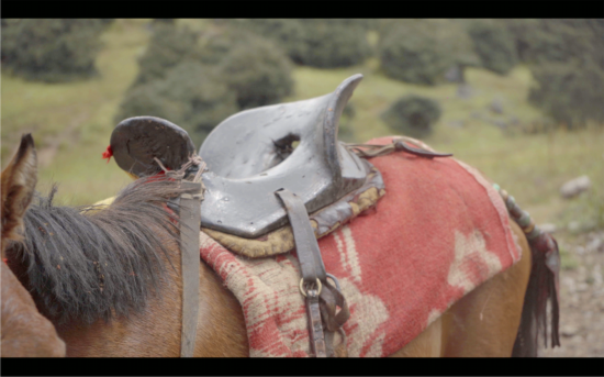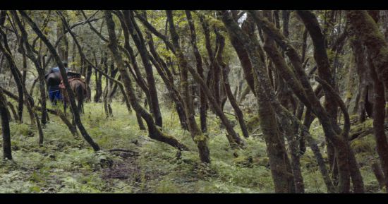 后半夜下了一點(diǎn)小雨,次日,羊槽子變得格外清澈、透亮,此時(shí)正是八月,夏天似乎還很漫長。一大早,沙馬伍颯跟吉克拉哈就來到村民家中借馬,“你們家的馬,可以借我們拍一下戲嗎?拍完了給你們一點(diǎn)借馬的錢”,而與他們交流的村民,是馬的主人,她認(rèn)為她家的馬并不合適:“我們家的馬還沒有馴好,怕是勝任不了”,吉克拉哈趕忙解釋:我們不拿來騎,就是拉著它走一下,講述“一個(gè)彝族畢摩阿普(老畢摩)從別人家做完儀式回來,牽著馬路過森林”這么一段戲,就拍攝可能一分鐘不到的視頻,幾個(gè)鏡頭就完了。