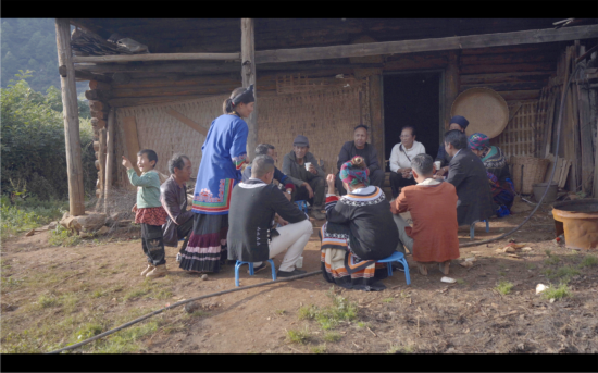 朱靖江教授認(rèn)為,這樣一種主位影像,能夠“建構(gòu)日趨民主化、公平化的社會(huì)對話體系,消除因經(jīng)濟(jì)、政治、地緣、性別等差異而形成的身份、文化與權(quán)力鴻溝”。它不僅打破了過去依賴于技術(shù)掌握者以及文化經(jīng)營的影像表述霸權(quán),而且這樣一種在地性優(yōu)勢,使得他們所呈現(xiàn)的文化旨趣與價(jià)值觀念都更為真實(shí)、多元,他們不僅通過呈現(xiàn)語言、服飾、音樂和舞蹈等符號要素,還展現(xiàn)了許多社會(huì)習(xí)俗以及文化事項(xiàng),如通過豬膽占卜運(yùn)勢、餐桌上的飲食習(xí)俗、娃娃親、打工潮、換洋火(一種以物換物的買賣行為,主要發(fā)生在解放前和上個(gè)世紀(jì)五十年代以前)、背家譜、作畢、空巢老人等,呈現(xiàn)出了人類學(xué)文化書寫當(dāng)中的整體性,主創(chuàng)們力圖通過這些共同的記憶以及文化符號再現(xiàn)一個(gè)時(shí)代、一種生活方式。