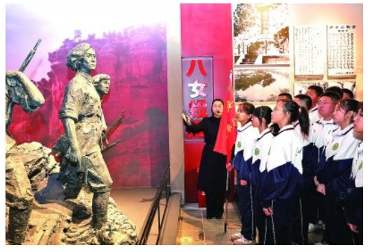 4月3日,遼寧省本溪市本溪滿族自治縣抗聯(lián)中學(xué)的學(xué)生在東北抗聯(lián)史實(shí)陳列館參觀。新華社記者 李鋼攝