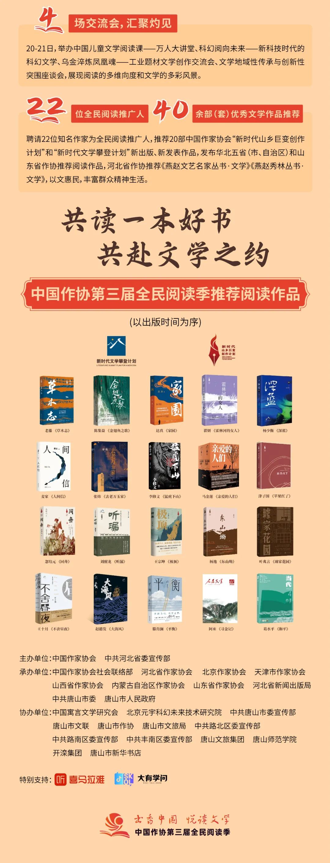 2025年世界讀書日期間,中國作協(xié)聯(lián)合華北地區(qū)北京、天津、河北、山西、內(nèi)蒙古五省市區(qū)及山東省作協(xié),共同舉辦以“文潤燕趙 閱覽山河”為主題的中國作協(xié)第三屆全民閱讀季。中國作家網(wǎng)將持續(xù)報道,敬請關(guān)注。