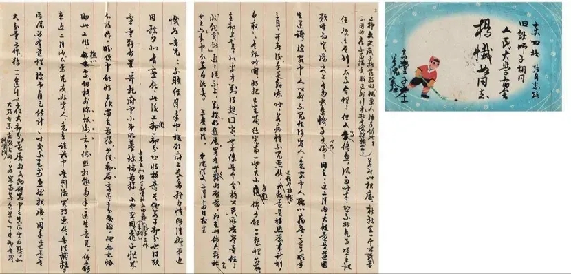 不晤經(jīng)月,年中祝愿府上長幼體力情緒佳好。弟近因體力似有變化,此后工作一部分恐將放棄,其他若干部分也得考慮重新布置。前托府中小弟所摹珍琉璃圖樣,【近年已擬將全部資料交由一熟人接手去作】小弟或因年終工作正忙,來不及作,盼便中能將上次帶去圖樣,為從郵局寄還,十分感謝。他好意協(xié)助此工作,熱心處仍格外深致謝意!依照相熟多年一醫(yī)生意見,盡可能在近二月內(nèi),不要見友好客人,免在談話中受刺激,□[8]轉(zhuǎn)惡化,無從補救。所說必有道理。據(jù)弟自己估計,一時或不至于忽然報廢。因手邊還有大分量工作,待一一進行,(工作大部分,還屬于文物研究中之真正空白點,北大考古系、或科學院考古所,若容易著手,早已下手,那有我這種文史底子極薄弱的“玩票人”插手余地,正因為工作不易措手,我這外行才能有試探機會?。┤艏创藞髲U,新社會一個公民責任便未盡到,太不合理!但人事倏忽,風雨時來,恐不能凡事憑主觀愿望而定,歷史上有多少遺憾事可以作例!因之,這二月內(nèi),大致還是遵醫(yī)生建議,除家中人以外,不見任何客人,免家中人耽心病者,過了明年三月,開春后,手足解凍時,若病情不見惡化,還稍有轉(zhuǎn)機,大致還是將照原來計劃,爭取爭取有限時間,將把已完成、待完成一些大小專題,盡可能一一整理出來,全部上交,似乎才對得起囗家,也才像是個“合格公民”所應盡責任!“成就貢獻”通通說不上,對總的進展,略有些些新的啟發(fā),即在此偉大新社會廿五六年中不算白活矣。