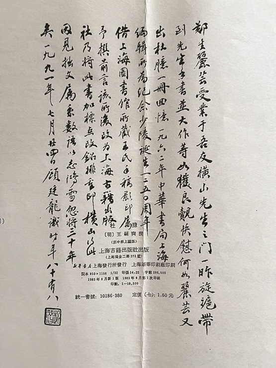 上世紀(jì)80年代末,筆者應(yīng)邀赴日教學(xué)研究,和顧老辭行時(shí),他還特地提到平岡武夫、小野和子和尾崎康。到了90年代,就要再回到最先提到的關(guān)于《杜臆》一書(shū)的題跋了。