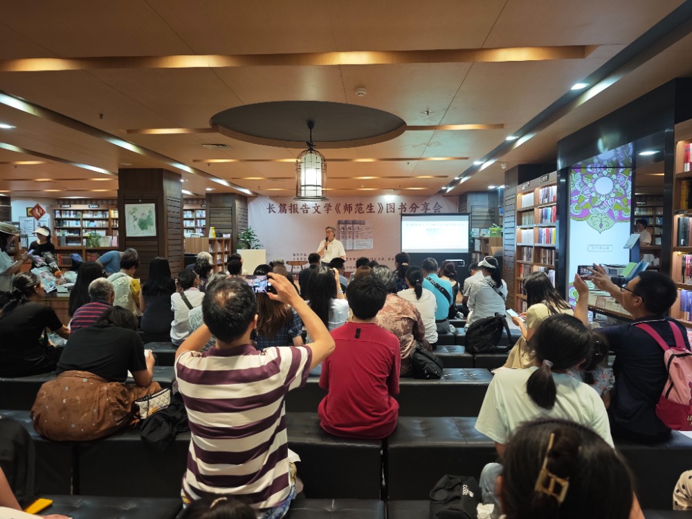 6月7日下午,一場飽含教育情懷與文學(xué)溫度的圖書分享會在沙坪壩書城溫暖舉行——長篇報告文學(xué)《師范生》圖書分享會,吸引了來自重慶文學(xué)院、重慶師范大學(xué)文學(xué)院、西南大學(xué)文學(xué)院、沙區(qū)作協(xié)等單位的近百名文學(xué)愛好者與熱心讀者,共同聆聽這部致敬中國師范群體的時代之作。