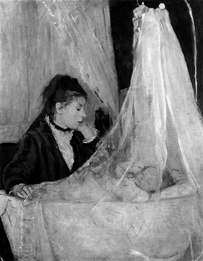 莫里索1841年生于法國(guó)中部一個(gè)顯赫家庭,父親是高級(jí)官員,母親來(lái)自洛可可藝術(shù)世家。莫里索和姐姐艾德瑪自幼得到吉夏爾等學(xué)院派畫(huà)家指導(dǎo),萌生了對(duì)美術(shù)的興趣。姐妹倆出色的天賦很快令家庭教師驚嘆并自認(rèn)教無(wú)可教。1852年莫里索隨家人遷居巴黎,自此常到盧浮宮臨摹大師作品,系統(tǒng)掌握了古典肖像畫(huà)、風(fēng)俗畫(huà)的技法。在當(dāng)時(shí)的法國(guó)社會(huì)中,女性一律不得進(jìn)入高等美術(shù)學(xué)院接受教育,也不被允許雇傭模特或外出寫生。繪畫(huà)對(duì)莫里索姐妹而言,只是淑女教育的一項(xiàng)課程和娛樂(lè)消遣的一種雅好。艾德瑪在學(xué)畫(huà)過(guò)程中原本受到更多稱贊,但成年后嫁與軍官并搬離巴黎,也就不再作畫(huà),而莫里索對(duì)美術(shù)始終保持著熱愛(ài)。1861年她師從巴比松畫(huà)派的卡米耶·柯羅,這成為她從藝的轉(zhuǎn)折點(diǎn)??铝_所授的對(duì)景寫生,對(duì)莫里索而言是一種新鮮的創(chuàng)作體驗(yàn),更是一種走近自然、師法自然的藝術(shù)理念。幾年間她陸續(xù)畫(huà)出了《諾曼底的茅草屋》《瓦茲河岸》《奧弗古路》等出色的風(fēng)景畫(huà),這些作品自1864年起多次入選法蘭西美術(shù)院主辦的全國(guó)畫(huà)展。這一官方美術(shù)展自17世紀(jì)起就是全國(guó)青年畫(huà)家競(jìng)相追逐的成名之路,莫里索受官方沙龍認(rèn)可的程度,使當(dāng)時(shí)作品屢次遭拒的其他印象派先驅(qū)望塵莫及。比在藝壇嶄露頭角更可貴的是,莫里索在創(chuàng)作這些風(fēng)景畫(huà)的過(guò)程中,悟到了如何捕捉自然界中隨光線變化而瞬間出現(xiàn)的鮮活色彩——日光斑駁、樹(shù)影婆娑、波光粼粼……她又將這些寫生所見(jiàn)的美妙光色運(yùn)用到對(duì)家庭場(chǎng)景的描繪中,畫(huà)技日益精進(jìn)。