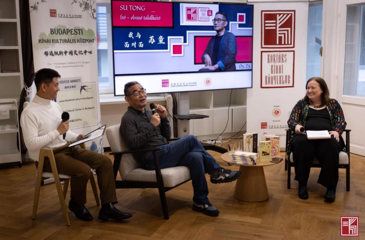 近日,在中國作協(xié)外聯(lián)部指導(dǎo)下,匈牙利中國文學(xué)讀者俱樂部與布達(dá)佩斯中國文化中心在布達(dá)佩斯共同舉辦了多場蘇童讀者見面會。著名作家、茅盾文學(xué)獎得主蘇童來到匈牙利,與當(dāng)?shù)刈x者面對面交流,受到熱烈歡迎?;顒佑尚僦杏押脜f(xié)會(MKBT)、匈牙利PRA公關(guān)公司、匈牙利《新導(dǎo)報》等協(xié)辦,由匈牙利中國文學(xué)讀者俱樂部負(fù)責(zé)人、資深漢學(xué)家、文學(xué)翻譯家宗博莉·克拉拉(Zombory Klára)主持。
