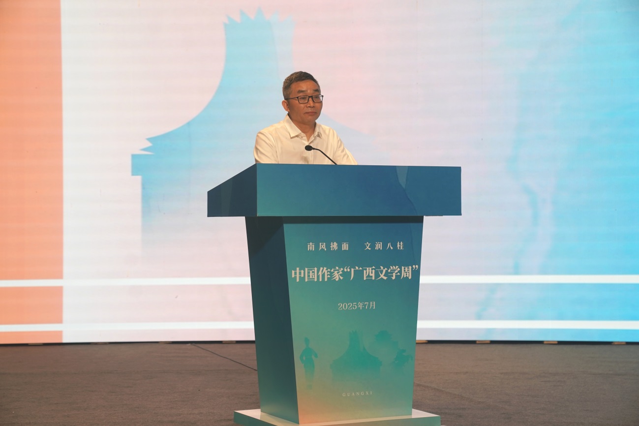邱華棟在講話中表示,近年來(lái),廣西文學(xué)創(chuàng)作氣象崢嶸,百花競(jìng)妍,“文學(xué)桂軍”崛起,逐鹿“高原”,形成了令人矚目的規(guī)模效應(yīng)。特別是去年“中國(guó)文學(xué)盛典?駿馬獎(jiǎng)之夜”舉辦暨廣西作協(xié)實(shí)現(xiàn)提級(jí)升格,為廣西文學(xué)發(fā)展注入了新的動(dòng)能。為貫徹落實(shí)黨的二十屆三中全會(huì)精神,特別是全會(huì)《決定》中“完善健全體系,建立優(yōu)質(zhì)文化資源直達(dá)基層機(jī)制”的要求,堅(jiān)持不懈用習(xí)近平文化思想武裝頭腦、凝心鑄魂,今年舉辦中國(guó)作家“廣西文學(xué)周”,希望在這片文學(xué)的沃土上,通過(guò)文學(xué)公共服務(wù)和志愿服務(wù)的“精準(zhǔn)滴灌”,將更多優(yōu)質(zhì)文學(xué)資源輸送到廣大文學(xué)愛(ài)好者和讀者身邊。
