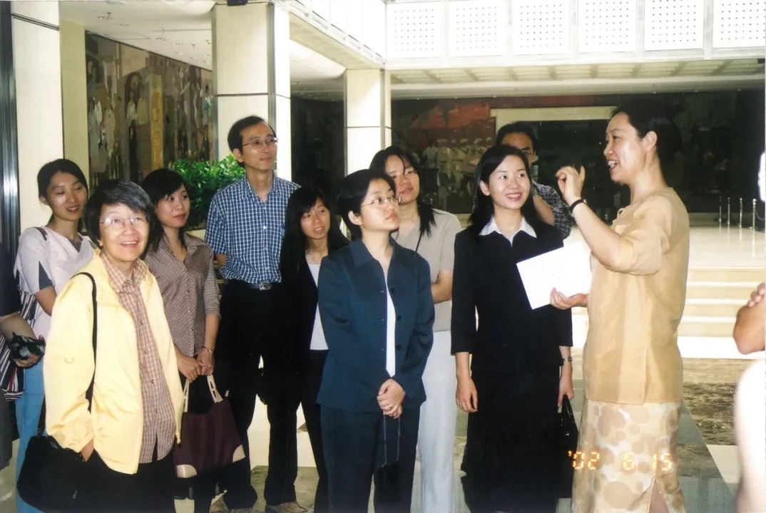 2004年于文學(xué)館接待香港中文大學(xué)代表團(tuán),前排左一小思(盧瑋鑾)教授、左二張?jiān)伱方淌凇⒆笕涡訔鹘淌?/span>